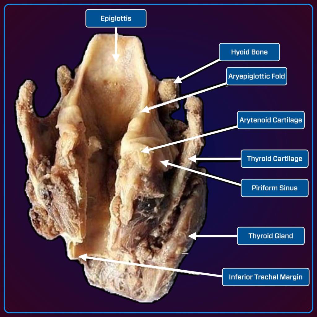 The epiglottis is considered the cornerstone of landmark identification during laryngoscopy. So much so, that it was nicknamed “epiglottoscopy” to highlight the importance of the epiglottis as an anatomic landmark. This is because once the epiglottis is identified, the intubator can be assured that the larynx (and the trachea beyond it) are nearby: located just posterior and inferior. .