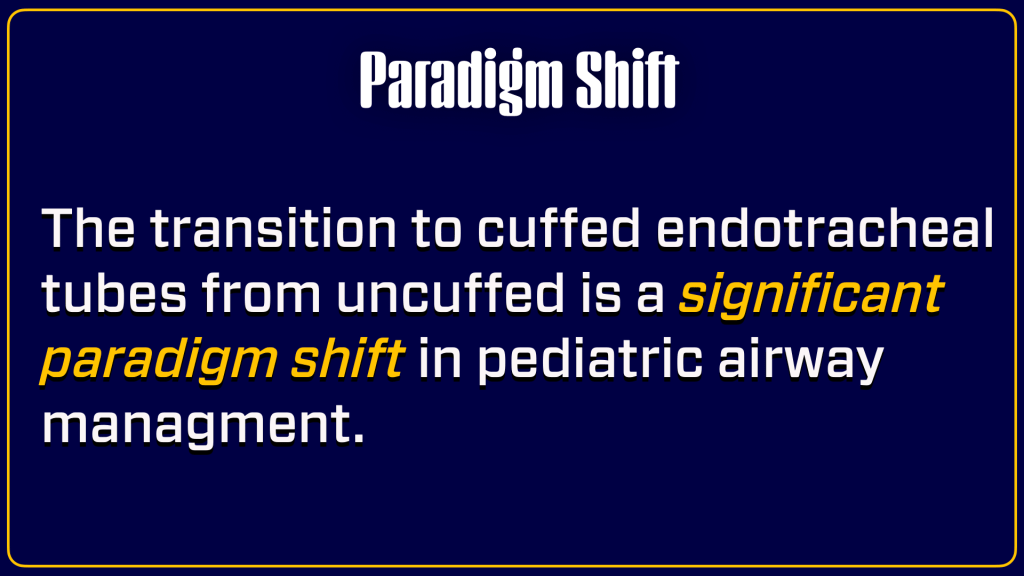 However, in the early 2000s, a shift occurred as more evidence emerged supporting the safe and effective use of cuffed endotracheal tubes (CETTs). This shift was driven by several factors: