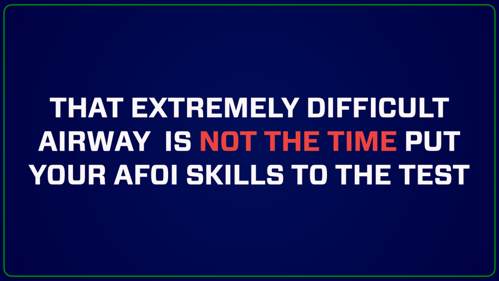 Certainly a consideration for the use of AFOI in the known or predicted difficult airway makes sense, particularly in the patient undergoing an elective procedure, but this is not the whole picture. What if your patient is in extremis or unstable. What then? Is AFOI still a good choice? The second biggest factor in deciding whether AFOI is right for your patient is: what are the conditions of the situation. In other words, what is the context.